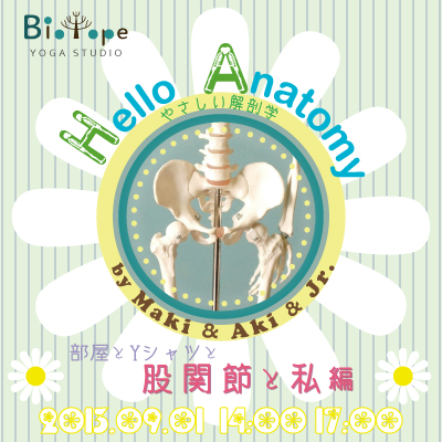 ●日 時 : 2013年9月1日(日)  14:00 〜 17:00 (3時間)  前半は座学(解剖学講座と体験談)、その後ヨガクラスで動きも確認していきます。